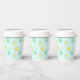 Happy Easter paper cups decorated with egg pattern on blue background