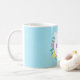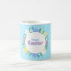 Happy Easter coffee mug decorated with flowers and eggs on blue background