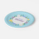 Happy Easter paper plate decorated with flowers and eggs on blue background