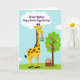 This design shows a cheerful spring scene with a tall, yellow, long-necked creature on the left, dotted with warm brown spots and wearing a friendly, star-shaped eye as it holds a striped egg in its mouth 🐰. Its gentle tilt toward the center gives the moment a buddy-like closeness, as if it’s proudly showing off its find. On the right, a sturdy tree with a rounded, leafy green top is covered in hanging eggs, each decorated with different patterns in fuchsia, lavender, sky blue, and other soft shades. At the base of the tree sits a brown woven basket, filled with more decorated eggs, adding to the sense of an ongoing hunt shared together. Behind everything, a soft blue sky fades into a green patch of grass, with puffy white clouds floating above 🌷. Near the top, a large cloud holds the message “Great Nephew Happy Easter Egg Hunting!” in purple lettering, centered so it stands out clearly. The creature’s small antenna-like nubs and the egg’s orange, blue, and yellow stripes add extra detail to the left side of the scene. The tree’s eggs appear scattered across the canopy, with varied dots and zigzags against the deep green leaves.