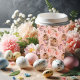 Tan Osterbrunnen sitzen in einem blumenreichen Ostereier mit weißen, lila und rosafarbenen Eiern mit Blume auf einem hellrosa Aquarell. Begrüßen Sie Ihren Gast beim Ostersonntagsbrunch oder Mittag, denn wir haben ein passendes Geschirr-Set. Niedlich für Familien und Kinder gleichermaßen.