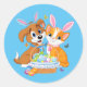 Happy Easter Puppy and Kitten Runder Aufkleber