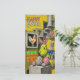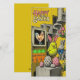 Happy Easter Retro Card With Chick Wearing Bunny Ears, Chocolate Bunny, Neon Carrots and Speckled Eggs