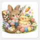 Celebrate Easter with this adorable sticker sheet featuring a cute bunny and chick surrounded by colorful eggs, flowers, and springtime elements. Perfect for decorating gift bags, party favors, greeting cards, or crafts. These cheerful square stickers bring a festive touch to any Easter celebration and are ideal for kids and adults