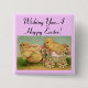 Süßes Vintage Chicks with cart, Wishing You A Happy Easter, Button Pin! Sweet Easter gift for children age five and up to wear.