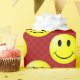 Niedliches gelbes Gesicht. Zeige, wie glücklich du mit diesem großen glücklichen Gesicht bist, mit einem riesigen Lächeln. Das Gesicht kann verschoben, verändert oder gelöscht werden. Der rote Hintergrund kann gelöscht werden, sodass Sie die Hintergrundfarbe ändern können. Passen Sie es an und machen Sie Spaß!