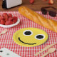 Diese niedlichen Teller machen das Party perfekt für Emoji-Geburtstagsfeiern. Mit einer handgezeichnet Style-Illustration eines gelb gelblich lächelnden Gesichts Emoji oder Emoticon mit großen Google-Augen und einem Lächeln.