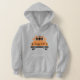Ce sweatshirt amusant a l'avant du pick up truck avec le texte Happy Fall. À l'arrière du camion, il y a un citrouille avec un motif de plaid pour buffle orange et noir.