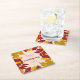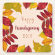 Farbvoller und stilvoller Untersetzer für Friendsgiving/Erntedank mit Herbstblättern auf pfirsichfarbenem Hintergrund, mit dem anpassbaren Text "Happy Friendsgiving 2019"