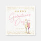 Glückliche Servietten zum Galentinstag für den Valentinstag. Mit Champagnerflöten, einem Herz und goldenem Glitzer.