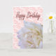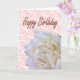 Eine weiße Rose über rosa Spitzen schmückt diese Happy Birthday Card.