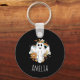 Schlüsselanhänger mit einer Illustration eines lächelnden Geistes. Dekoriert mit Blume, Regenbogen und Fledermäusen.