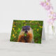 Ein niedlicher Erdhund, der zwischen den Blume sitzt. Er got so hungrig, dass er sich entschied, auf einem rosa zu nibbeln. Alles Gute zum Erlebnis!