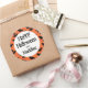 Happy Halloween Bat Pattern Kids Personalisiert Stickers. An Leckereien oder Gastgeschenken für Halloween-Partys anhängen. Personalisieren Sie Aufkleber mit Namen und Happy Halloween oder bearbeiten Sie Text zu ändern. Orangefarbener Hintergrund mit schwarzem Flechtmuster. Weißer Kreis in der Mitte mit Text innen. Karo unsere anderen lustigen und spukhaften Kinder Halloween-Party Vorräte.