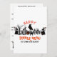 Conception de concept d'halloween éffrayant cool où les lettres sont faites avec des images de symboles d'halloween. Halloween, chauves-souris, citrouilles, corneille noire et chauves-souris volantes effrayant. Texte personnalisable pour le menu du dîner halloween. Mange boire et fais peur.