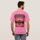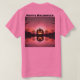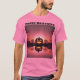 Happy Halloween Kürbislaterne Sunset T - Shirt Dies ist ein niedlicher T - Shirt, ein rosa und orange Halloween T - Shirt. Das Design entstand aus einer originellen Kunstgeschichte, die mit einem hübschen, rosa und orangefarbenen Sonnenuntergang und einer lächelnden Kürbislaterne besticht. Das Bild ist eine malerische Szene mit einem rosa Sonnenuntergangshimmel, einer großen Kürbislaterne, fliegenden Fledermäusen, Bäumen und Wasser. Glückliches Halloween ist über dem Bild in schwarzem Text. Sie können den Text mit der Schaltfläche Anpassen ändern.
