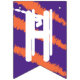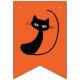 Happy Halloween Orange Black Lila White Scratch Bunting Fahnen, Dieses festliche "Happy Halloween"-Urlaubssängerbanner mit orangefarbenen, schwarzen, lila und weißen Farbtönen, schwarzer Katze und dekorativem Text. Geschriebene Briefe