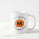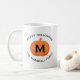 Diese beängstigende niedliche personalisierte Herbstkaffee-Tasse verfügt über einen orangefarbenen Kürbis mit einer typischen Monogramm-Initial- und einer modernen schwarzen "Happy Halloween"-Formulierung mit eigenem Familiennamen, der personalisiert werden kann.