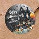 Geben Sie den Gästen jedes Jahr bei einem Halloween-Kostüm-Party oder bei einem lustigen und einfachen Aufkleber ein paar schöne Gastgeschenke. Die Einrichtung besteht aus einem Spuk Haus in Schwarz/Weiß mit orangefarbenen Akzenten aus einem Baum, Kürbissen und Jack-o'-Laternen, die mit Geist- und Fledermausdetails zu einem besonderen Halloween-Charme verströmen. Die Typografie verwendet einen eleganten, erschütterten Serif-Schriftart mit einem Vintagen, fast Viktorianischen Ambiente, dass Krawatte perfekt in das moody Spuk Thema. Sie können diesen Aufkleber auch als Umschlag Aufkleber verwenden, um Ihrem Party eine unheilvolle Touch hinzuzufügen. Spaß Niedliche Spooky Spuk House Ghost Bats Orange Black Happy Halloween Party Classic Round Sticker.