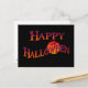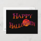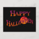 Glücklicher Halloween-Gruß mit einer Spektralfledermaus, die über einen vollen Oktobermond fliegt.