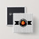 Dieses Pinback Button Design zeigt einen Halloween Kürbis auf einem schwarzen Etikett mit dem Text 'Happy Halloween' Personalisieren Sie mit Ihrem Namen oder anderen Text. Hintergrund ist ein schmales schwarzweiß gestreiftes Muster. Suchen Sie ID212, um weitere Produkte mit diesem Design zu sehen.
