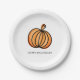 Glückliche Halloween-Kürbispapier-Teller. Matching-Elemente verfügbar. Originale Kunst von Künstlern eigene Illustrationen. Bitte nutzen Sie den unten stehenden Button für die Nachricht, um weitere Anpassungen und spezielle Anfragen zu erhalten. © Zoe Chapman Design