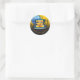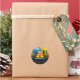 Frohe Halloween-Stamm oder Leckerei Sticker mit blauem Kofferraum gefüllt mit Candy & Pumpkin, Blue Moon, Fence & Trees.