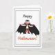 Karte mit meinem Kunstwerk eines niedlichen Vampirs, der versucht beängstigend auszusehen, mit anpassbarem Text "Happy Halloween". Anpassbarer Vers drinnen.