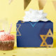 Happy Hanukkah, Star von David, Menorah, blaues Muster Packpapier.