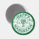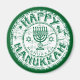 Runder Magnet mit einem Bild eines grünen Grunge Happy Hanukkah, eine Menorah, und zwei Sterne von David auf weiß mit einem grünen Rand. Die gesamte Hanukkah Magnet Kollektion finden Sie unter der Rubrik ZUHAUSE im Bereich HOLIDAYS.