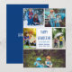 Diese niedliche, trendige Happy Hanukkah-Karte zeichnet sich durch ein modernes Layout aus 5 Fotos der Familie auf weißem Hintergrund mit blauer Typografie aus. Diese schöne jüdische Foto-Urlaubskarte bietet eine eigene Fotografie, die Ihre Nachricht und Ihren Familiennamen umgibt.