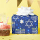 Dieses Hanukkah Ferien Design verfügt über einen strahlend blauen Hintergrund mit Menorah und Stern von David Overlay. #hanukkah #chanukah #holidays #saisononal #festive #modern #blue #menorah #starofdavid #jewish #stylish #elegant #elegic #pattern #custom #addyourown #giftwrappingpaper #giftwrapping #partysupplies