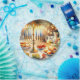 Hanukkah Aquarellbild. Ein wunderschön gestaltetes Set für eine festliche Feier mit einer traditionellen Menorah mit Kerzen. Das weiche, warme Licht, die Dekoration der Ferien verleiht dem Ganzen eine Touch Beifall. Warme Lichter schaffen eine gemütliche und einladende Atmosphäre.