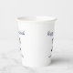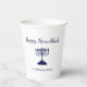 Happy Hanukkah Blue Holiday Papier Tasse, mit einer einfachen blauen Menorah und Schrift Typografie Design. Mit blau anpassbarem Text können Sie Ihre eigenen Informationen hinzufügen. Eine festliche Art, mit Freunden und Lieben zu feiern.