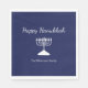 Happy Hanukkah Blue Holiday Party Serviette, mit einer einfachen weißen Menorah und Schrift Typografie Design. Mit einer weißen, anpassbaren Schrift können Sie Ihre eigenen Informationen hinzufügen. Eine festliche Art, mit Freunden und Lieben zu feiern.