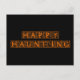 "Happy Haunting"-Ziertext in lebhaften orangefarbenen Buchstaben, ein humorvolles und raffiniertes Design für ein bewegendes Halloween