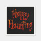 "Happy Haunting" Text in spektralorangen Buchstaben, mit ein paar geistreichen Augen, ein humorvolles Design für ein heimliches Halloween.