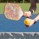Mit diesem coolen Pickleball-Paddel im Hippie-Stil spielen Sie stilvoll mit einem inspirierten Design fröhlicher, farbenfroher Blume. Fügen Sie 3 Zeilen benutzerdefinierten Text hinzu - Name, Monogramm, Pickleball Clubname, Firmenname, Standort, Telefonnummer, etc. Ein ideales Geschenk für Kinder, Eltern, Großeltern, Freunde, Kunden, Brautparty, Anfänger und erfahrene Spieler gleichermaßen - Sie werden sicher das Gespräch vom Pickleball Court sein.