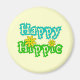 Ein cooles Hippie-Text-Design in den Farben Grün, Blau und Gelb, Sprichwort Happy Hippie.