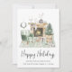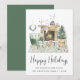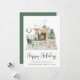 Boho-inspirierte Weihnachtskarte mit einer Aquarellbildervorführung eines gemütlichen Salbei-Grün-Zuhause, das für die Ferien mit Kranz, Kamin, Rentier, Weihnachtsbaum, Kerzen und Gnomen dekoriert ist. "Happy Holidays" ist in einem stilvollen, modernen Drehbuch geschrieben. Fügen Sie Ihren Namen und das Jahr in einfacher moderner Typografie hinzu.