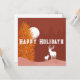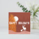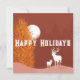 Happy Holidays Typografie auf Feiertagsthemen-Hintergrund in braun, einschließlich Weihnachtsbäume, Mond und die Rentiere.