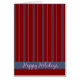 Niedliche, rot-blau gestreifte Weihnachtskarten, die das Sprichwort Happy Holidays unten in einer blauen Box verfassen. Passen Sie das Innere an, um Ihr eigenes Sprichwort zu schreiben.