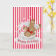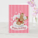 Weihnachts Lebkuchen Mann tauchen in Milch auf einem rot-weißen Zuckerrohr gestreift Hintergrund mit Happy Holidays Text. Alle Texte können bearbeitet werden.