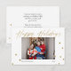 Eine moderne und dennoch elegante Goldkalligraphie von Happy Holidays mit einem Foto Ihrer Weihnachtslieder-Erinnerungen. Verschicken Sie diese fröhliche Urlaubspostkarte an Ihre Familie und Ihre Freunde, um den Beifall mit konfetti goldenen Polka-Punkten für mehr Spaß zu verbreiten