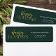Erstellen Sie Ihre eigenen Weihnachtskarten-Rücksendeadressen-Aufkleber mit Ihrer Firmenadresse und eleganten goldenen Feiertagen auf grünem Hintergrund.
