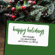 Große Rücksendeadressen-Aufkleber bieten Happy Holidays in grünem Text und Ihre Infos in schick weißer Schrift.