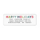 Die Rücksendeadressen-Aufkleber der Ferien können in modernen Sans Serifenschriften "Happy Holidays" mit festlichen saisonalen Farben bewundern. Personalisieren Sie Ihre Rücksendeadresse. Die Farben sind: rot, grün, grün, grün, grau, aquamarin, dunkelblau und dunkelgrau.