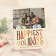 Eine lustige Retro-Urlaubskarte, um die Dinge dieses Weihnachtsfest zu verändern! Dieses Design ist ideal für jeden, der etwas Anderes ausprobieren möchte. Es hat eine coole Vintage Atmosphäre. Ihr Foto wird in einem weiten Querformat über die obere Kartenhälfte angezeigt. Unten ist "Happiest Holidays" in groover Typografie geschrieben, in einer warmen Farbpalette aus 70er, Rot, Orange, Senfgelb und Grün. Ihr Familienname und das Jahr erscheinen unten in einem sauberen serifenlosen Schriftart. Der weiche cremefarbene Hintergrund verleiht dem Retro-Ambiente eine besondere Note, und die Rückseite der Karte zeichnet sich durch ein spielerisches Muster handgezeichnet Weihnachtsbaummöbel aus, das im selben Farbschema wie die Vorderseite gehalten ist. Im Rahmen der Zazzle-Auswahl gibt es dieses Blatt nicht in Standardkartengrößen. Um dieses Design auf einer Standardkarte zu erhalten, können Sie es in der Sammlung finden oder mit der Zazzle Make Machine auf Ihr bevorzugtes Produkt übertragen. Karo in der Kollektion für passende Artikel, oder stöbern Sie in unserem Shop für einzigartige Weihnachtskarten-Designs.