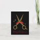 Diese goldene Glitzer-Schere macht eine perfekte Karte für Ihr Geschäft. Text leicht anzupassen! Eine klassische Farbkombination aus Schwarz und Gold. Elegante, stylistische Vorlage mit rotem Band.