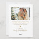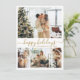 Modernes Gold und White Happy Holidays Script 4 Foto Collage Weihnachtskarte. Diese minimalistische Weihnachtskarte verfügt über eine 4-Foto-Gitter-Collage auf der Vorderseite und ein zusätzliches Foto auf der Rückseite. Der Gruß "Happy Holidays" ist elegant in Goldkalligraphie auf weißem Hintergrund handsigniert und bietet eine schicke und moderne Touch für Ihre Urlaubsstimmung. Auf der Rückseite befindet sich eine individuell anpassbare Grußvorlage mit einem Herzdoodle-Motiv und Platz für ein zusätzliches Foto. Diese personalisierte Karte eignet sich hervorragend, um den Feiertag mit Freunden und Familie zu teilen.